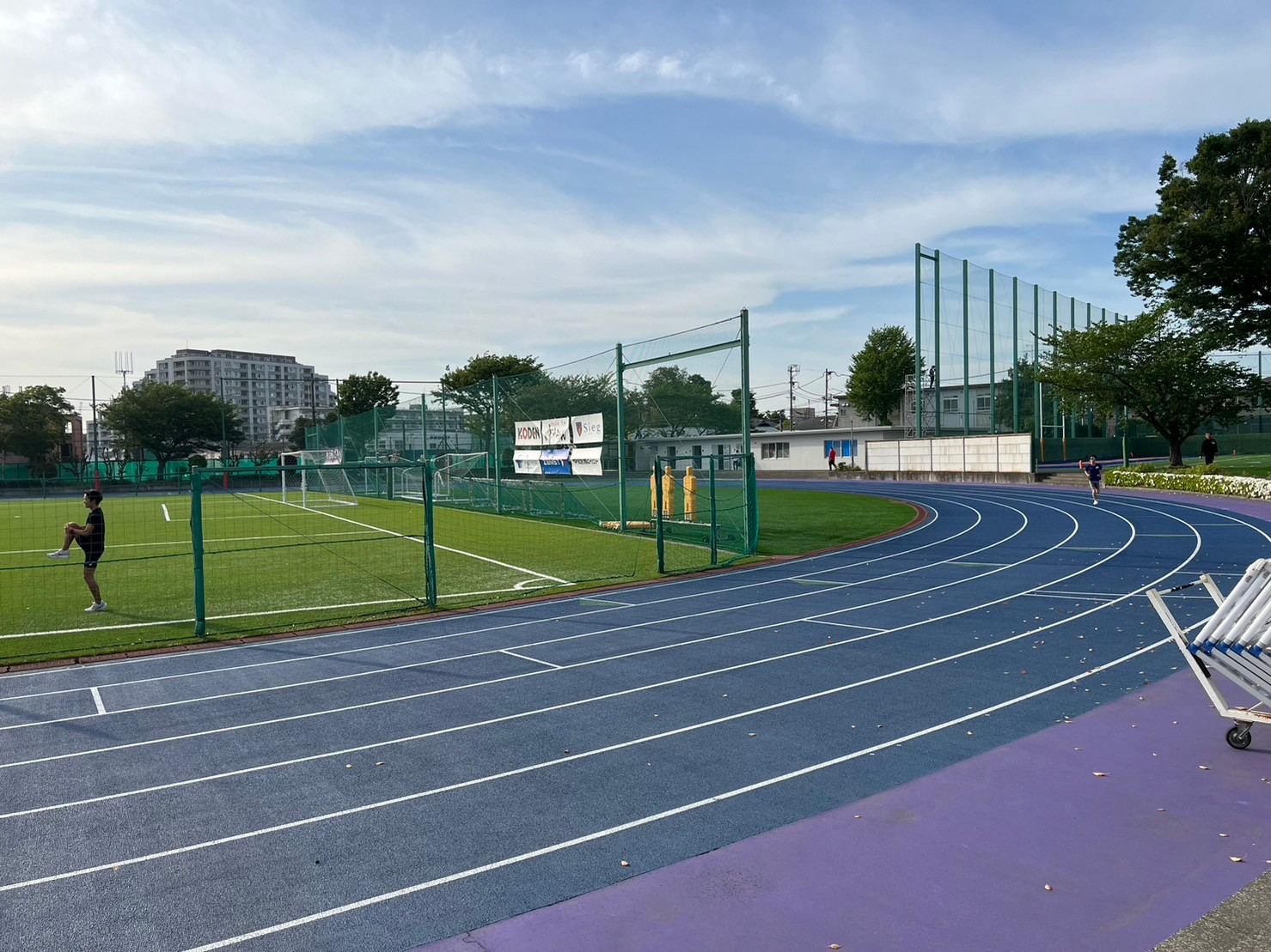 - 公園内のサイクリングコースで距離走を行ったり、公園内の芝生でjogを行ったりします。