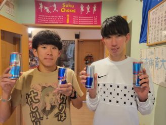 本学競走部OBで現在富士通陸上競技部に所属されている横手様より、レッドブルの差し入れをいただきました。